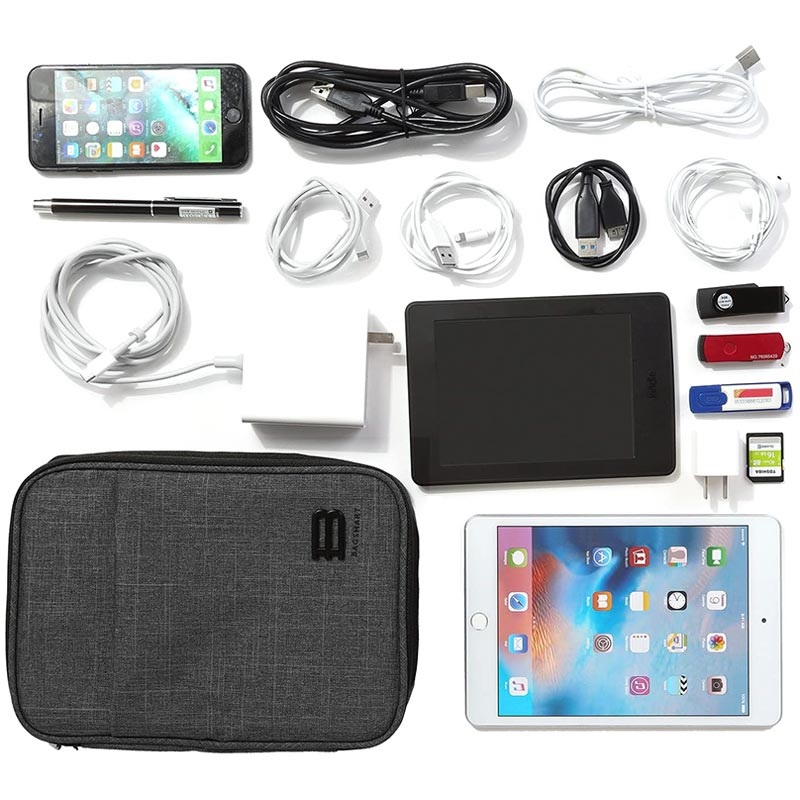 Bagsmart Belmont 2-Kerroksinen Lisätarvikkeiden Järjestäjä / Matkakotelo Älypuhelimelle, Tabletto, Kaapeli, Laturi