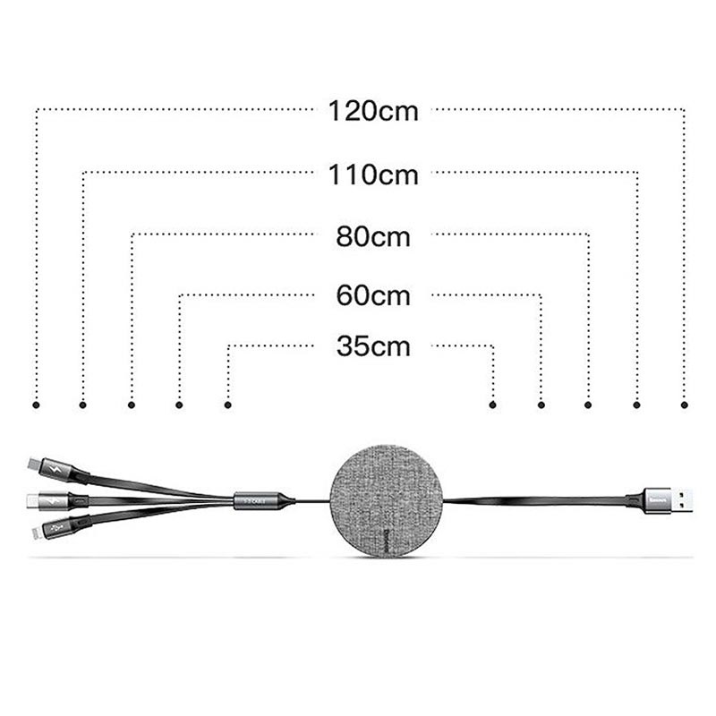 Baseus 3-in-1 Retractable USB Cable - MicroUSB, USB-C, Lightning