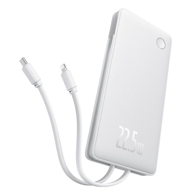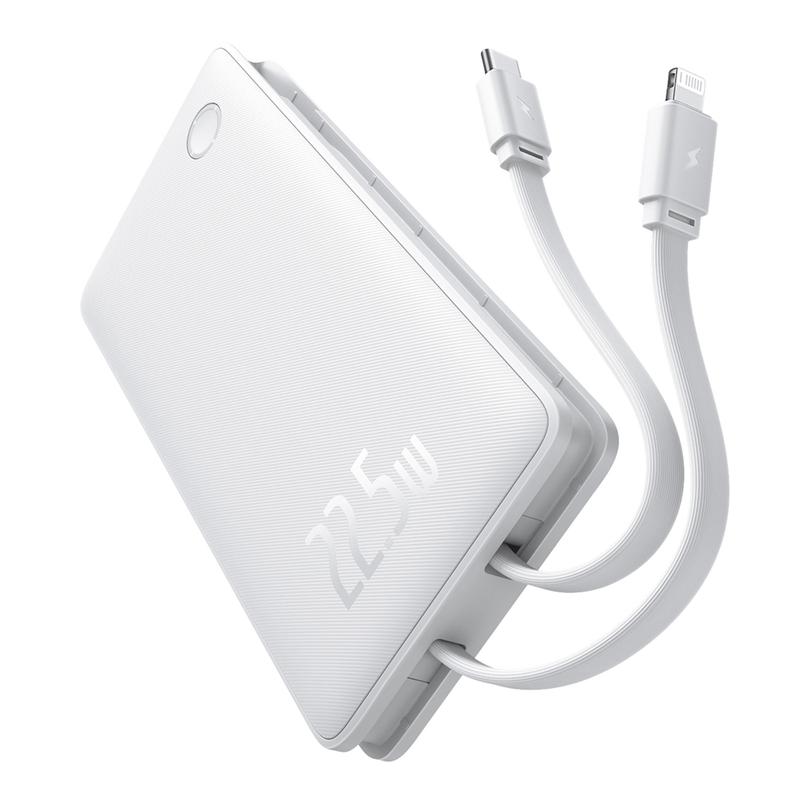 Baseus Airpow Lite 22.5W 10 000 mAh -varavirtalähde, jossa on sisäänrakennetut USB-C- ja Lightning-kaapelit - nopea lataava kannettava laturi