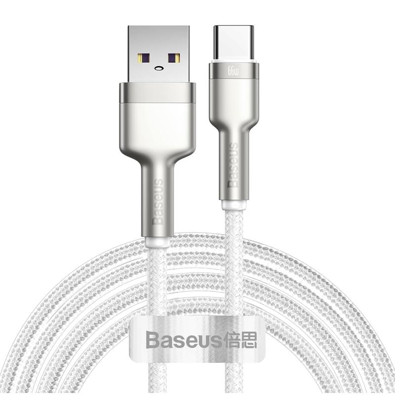 Baseus Cafule Metal Series USB-A ja USB-C kaapeli - 66W pikalataus, 2m Nylon punottu datakaapeli
