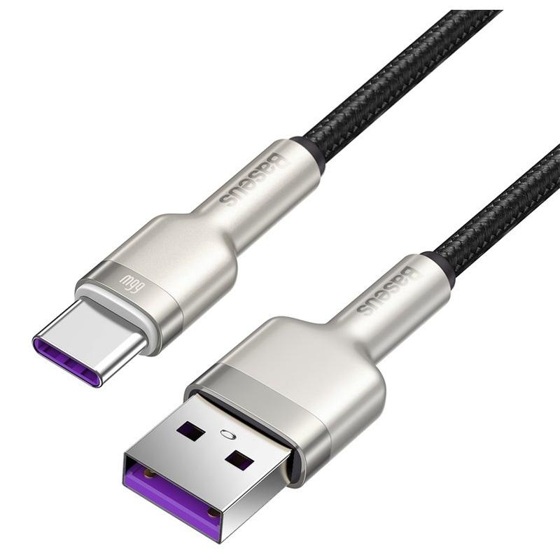 Baseus Cafule Metal Series USB-A ja USB-C kaapeli - 66W pikalataus, 1m Nylon punottu datakaapeli