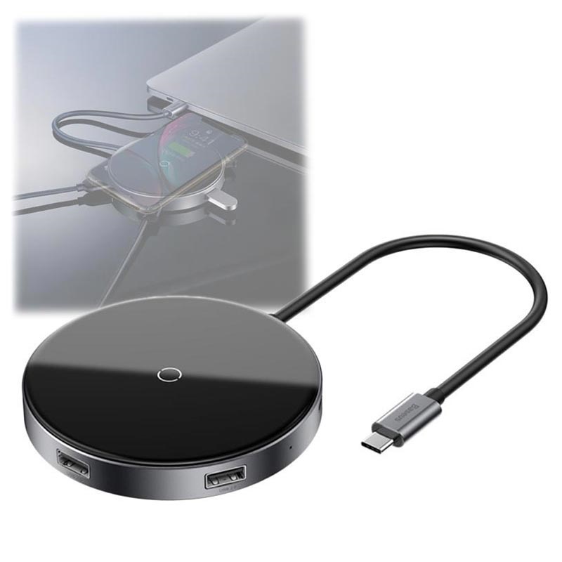 Monitoimilaite kaikki yhdessä lisävaruste toimisto- ja kotikäyttöön - langaton Baseus Circular Mirror -laturi hubiominaisuudella.