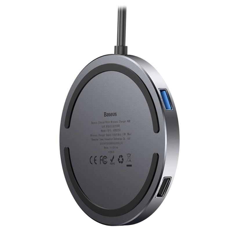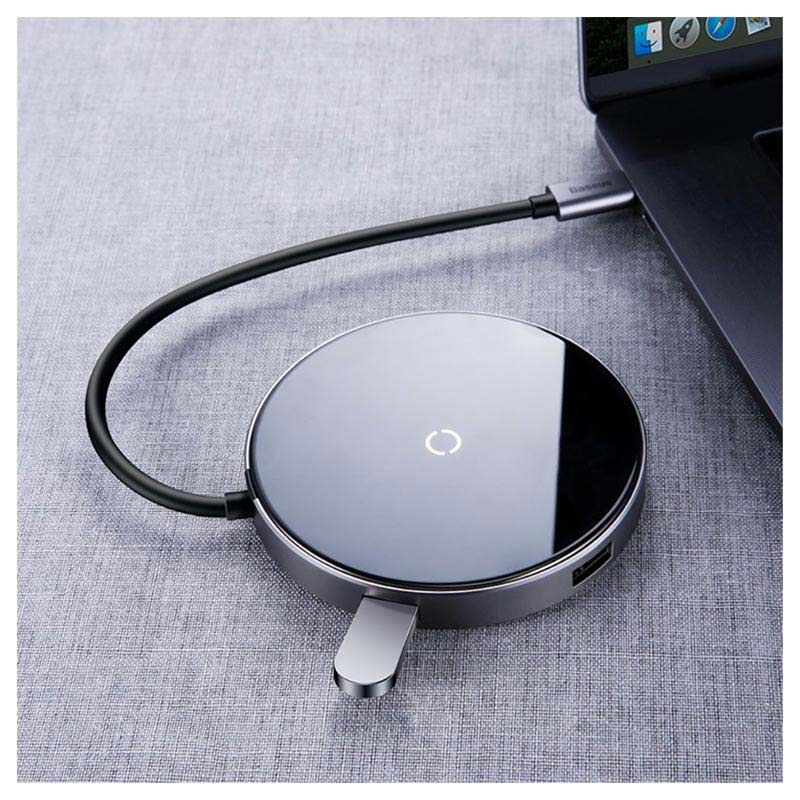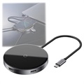 Baseus Circular Mirror 6-1:ssä Qi-Langaton Laturi ja Hubi Tyypin-C PD:lla, 4 USB Portilla - 10W, 60W, 5Gbps, 480Mbps