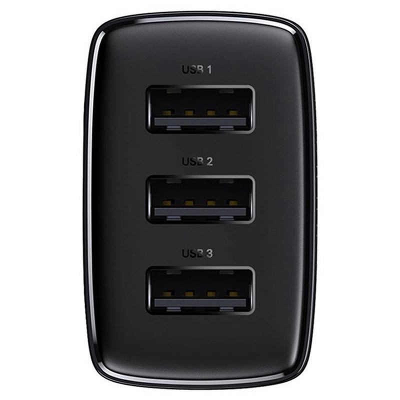 Baseuksen kompakti pikalaturi, 3x USB, 17W (musta)