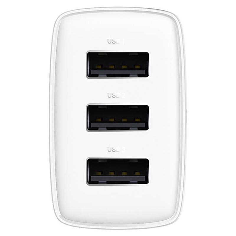 Baseuksen kompakti pikalaturi, 3x USB, 17W (valkoinen)