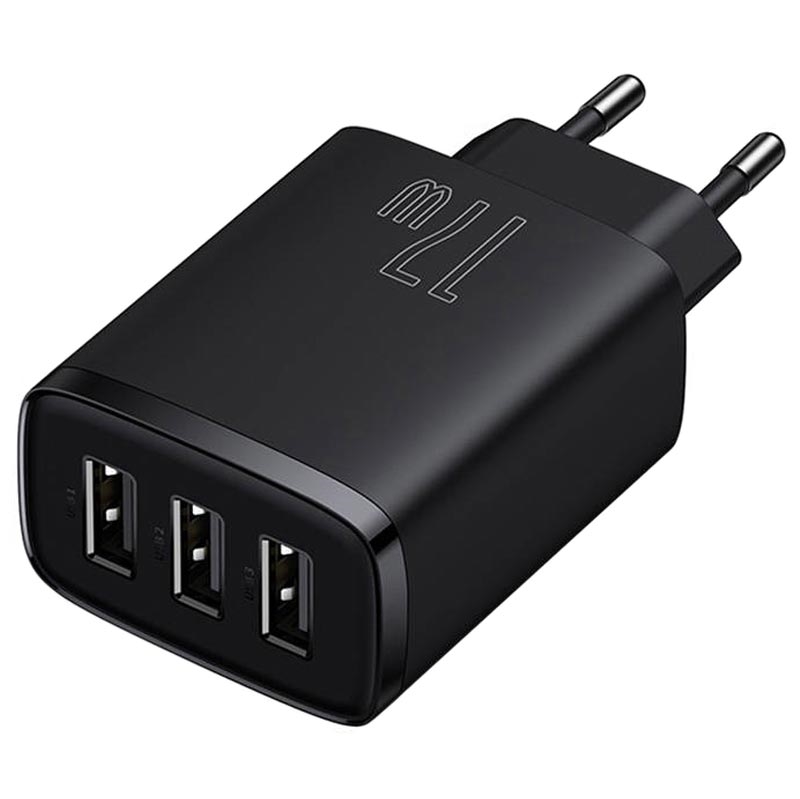 Baseuksen kompakti pikalaturi, 3x USB, 17W (musta)