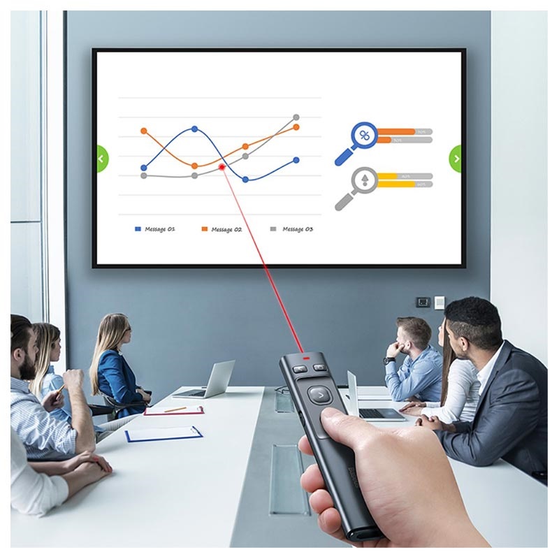 Langattomassa Baseus Orange Dot -esittäjässä on sisäänrakennettu laserosoitin ja painikkeet, jotta voit hallita esitystäsi helposti. Suunniteltu 100 metrin etäisyydellä, se sopii mainiosti suuriin kohteisiin. Langaton Baseus Orange Dot -esittäjä on erinomainen valinta opettajille, professoreille ja kokouksen esittelijöille.