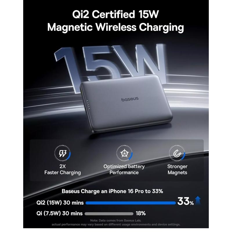 Baseus PicoGo AM41 yhdistää modernin langattoman mukavuuden ja tehokkaan langallisen latauksen yhdessä kompaktissa laitteessa. Qi2-magneettinen kohdistus pitää puhelimesi turvallisesti paikallaan, kun taas 27W:n USB-C-pikalataus hoitaa vaativat laitteet nopeasti. Sen ohut profiili, selkeä LED-merkkivalo ja edistykselliset turvallisuusominaisuudet tekevät siitä luotettavan päivittäisen virtalähteen.