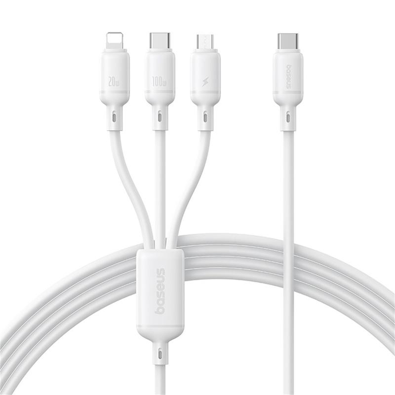 Baseus Silky 3-in-1 USB-C Lightning-, USB-C-, MicroUSB-pikalatauskaapeli - 100W/1.5m