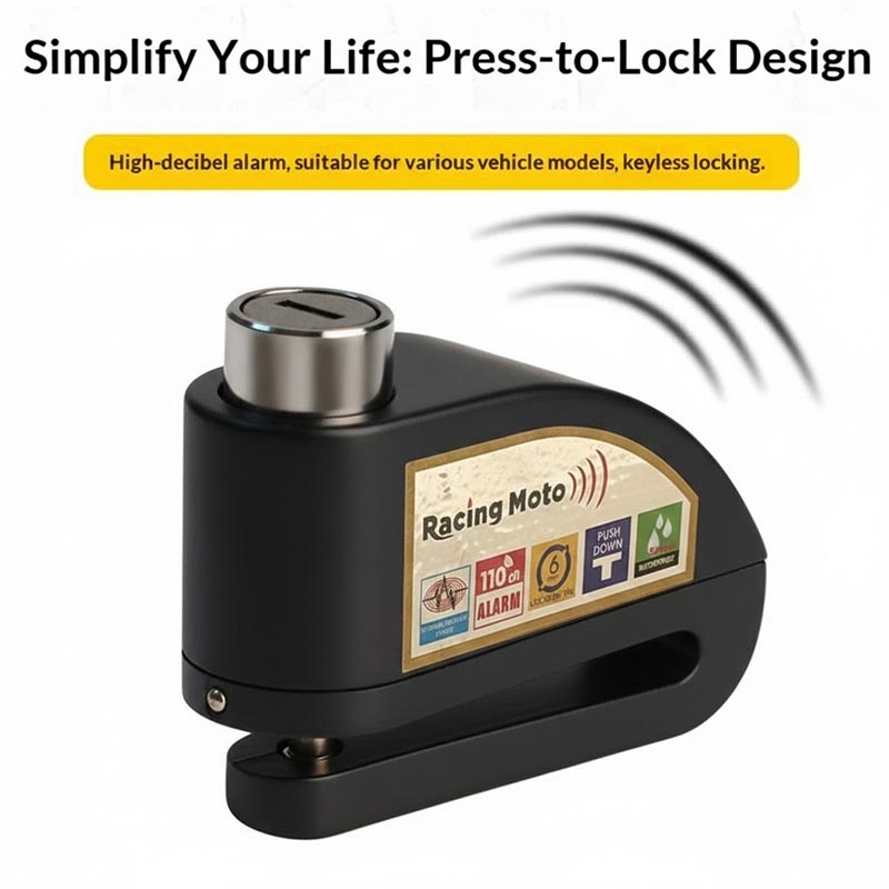 Suojaa polkupyöräsi, sähköpyöräsi tai moottoripyöräsi BENGGUO-levyjarrulukolla, jossa on tehokas 110dB:n hälytysääni. Erittäin herkkä liiketunnistin laukaisee välittömästi äänihälytyksen, jos se havaitsee peukaloinnin, mikä auttaa estämään varkausyritykset sekunneissa. Kestävä metallirunko ja säänkestävä tiiviste takaavat luotettavan turvallisuuden kaupunkikaduilla, pysäköintihalleissa ja ulkovarastoissa.