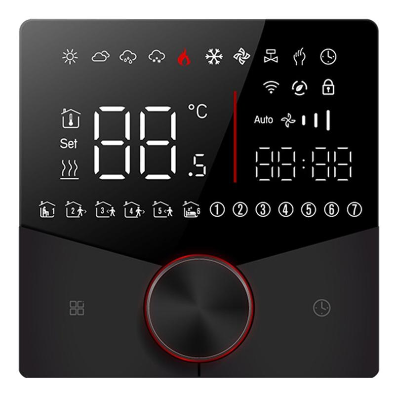 7 päivän ohjelmoitava toiminto tukee 5+1+1-viikko-ohjelmaa, jossa on kuusi säädettävää aikaväliä päivässä. Tämä antaa sinulle joustavuuden luoda erilaisia lämmityskuvioita arkipäiville ja viikonlopuille, mikä auttaa parantamaan mukavuutta ja vähentämään tarpeetonta energiankulutusta. Se on erinomainen ratkaisu käyttäjille, jotka haluavat lämmityksen seuraavan tarkemmin heidän päivittäistä rutiiniaan.