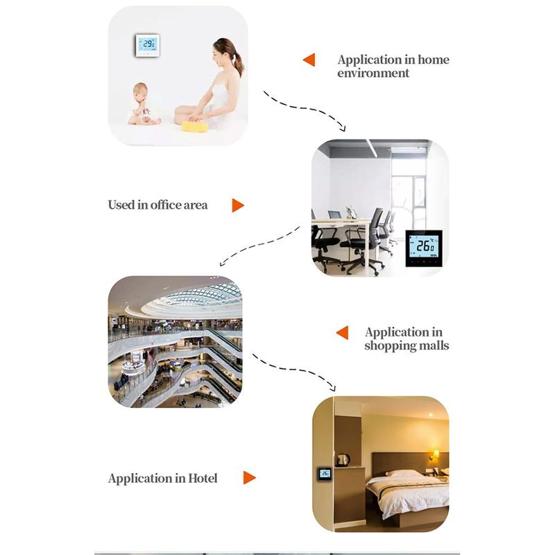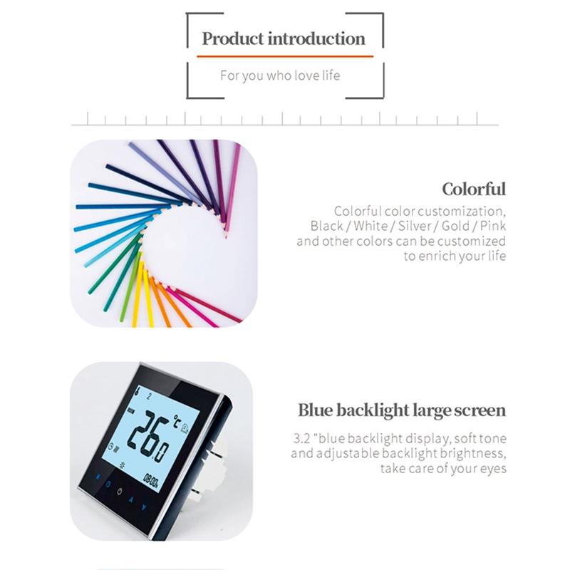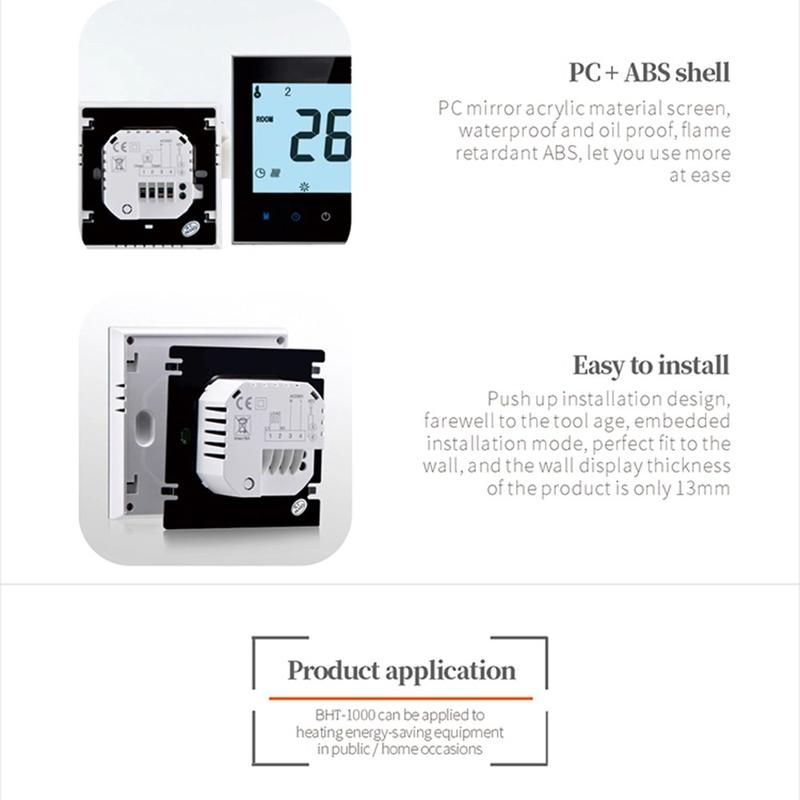 BHT-1000GB-älytermostaatti on suunniteltu tarjoamaan tarkkaa ja vakaata säätöä sähkölattialämmitysjärjestelmille kodeissa, hotelleissa, huoneistoissa ja muissa sisätiloissa. Tarkalla lämpötilan säätelyllä ja käytännöllisellä kosketusnäytöllä se auttaa luomaan miellyttävämmän sisäilmaston ja pitää samalla päivittäisen käytön yksinkertaisena. Sen moderni paneelisuunnittelu tekee siitä siistin ja toimivan lisäyksen monenlaisiin sisustuksiin.