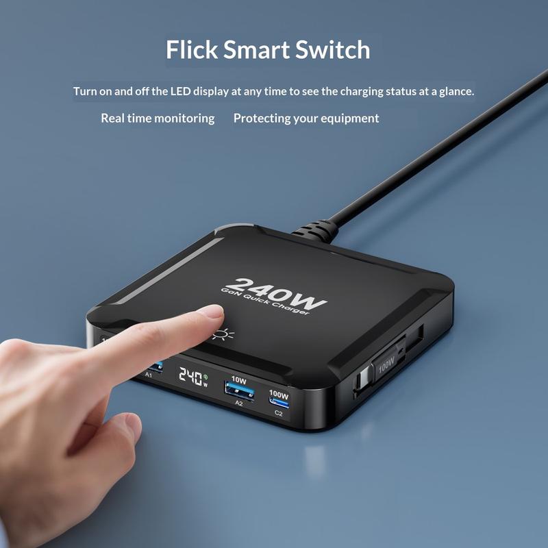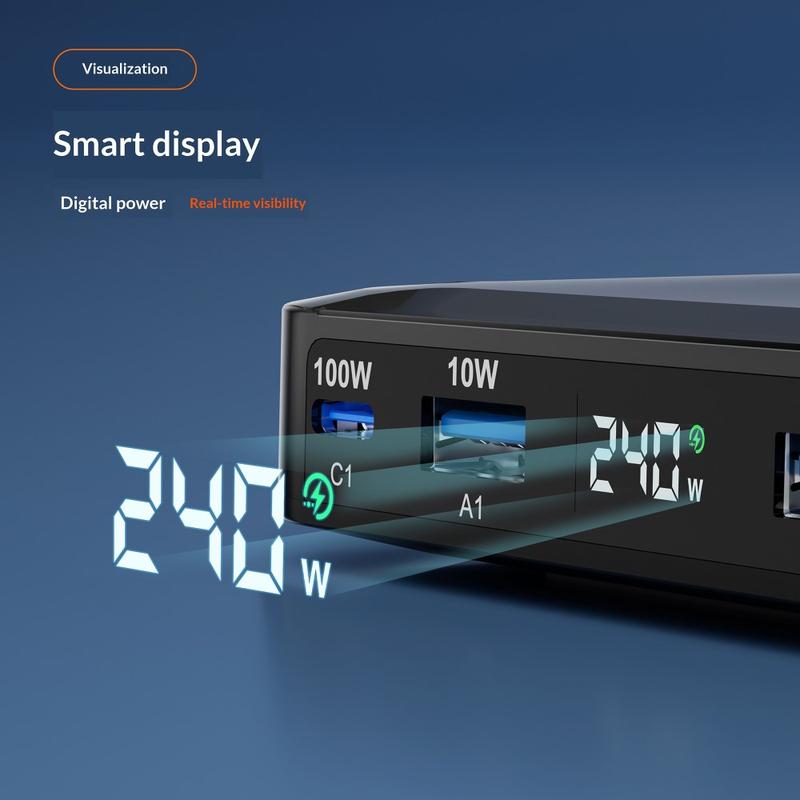 Älykäs LED-digitaalinäyttö näyttää reaaliaikaisia virratietoja, kuten kokonaistehon ja porttien toiminnan, joten voit seurata lataustilaa selkeämmin. Kosketusherkkä näytön kytkin helpottaa myös näytön sammuttamista, kun haluat pimeämmän huoneen yöllä. Sisäänrakennettu älykäs turvasuojaus tukee turvallisempaa lataamista säätämällä lähtöä automaattisesti ja suojaamalla ylikuumenemiselta, ylivirralta, ylijännitteeltä ja oikosulkuilta.