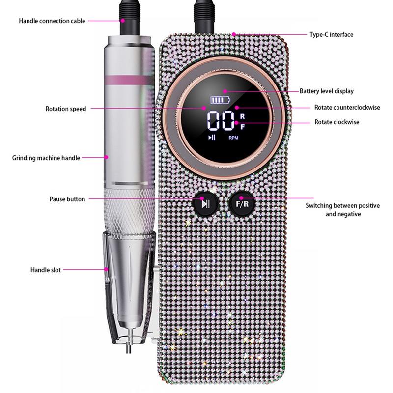 BLUEQUE BQ-108 Diamond Design -sähkökynsipora geeli- ja akryylikynsille - 35 000 kierrosta minuutissa, ladattava kynsiviila LCD-näytöllä