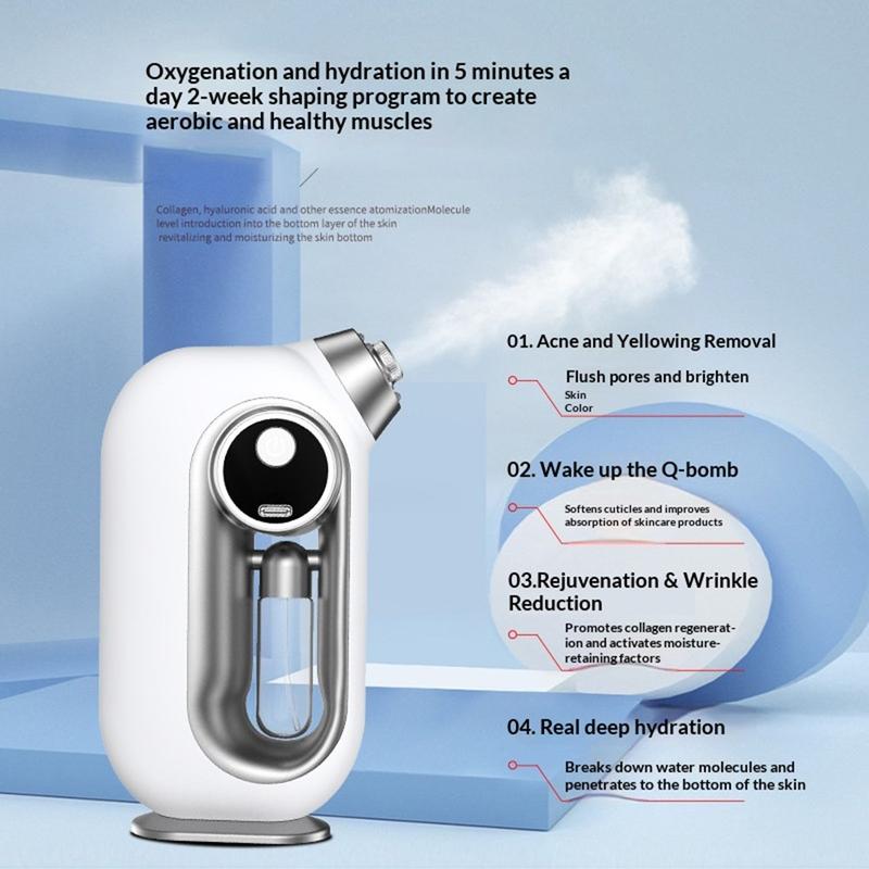Uudista ihonhoitorutiinisi BM-043-nanohappi-injektio-kasvokosteuttajalla. Tämä kannettava kädessä pidettävä sumutin on suunniteltu tuottamaan hienoa nanosumua nopeaa päivittäistä kosteutusta varten, jolloin iho tuntuu raikkaammalta, sileämmältä ja miellyttävämmältä koko päivän ajan.