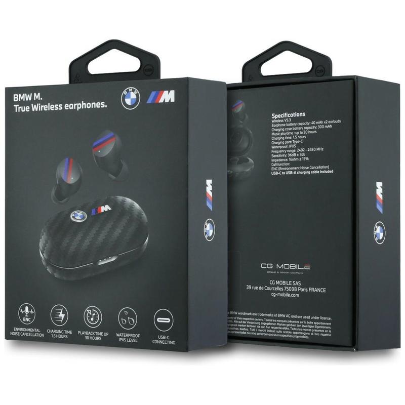 BMW M Carbon ENC True Wireless -langattomat kuulokkeet - Bluetooth 5.3, IPX5, jopa 30 tunnin toistoaika, USB-C-latauskotelo