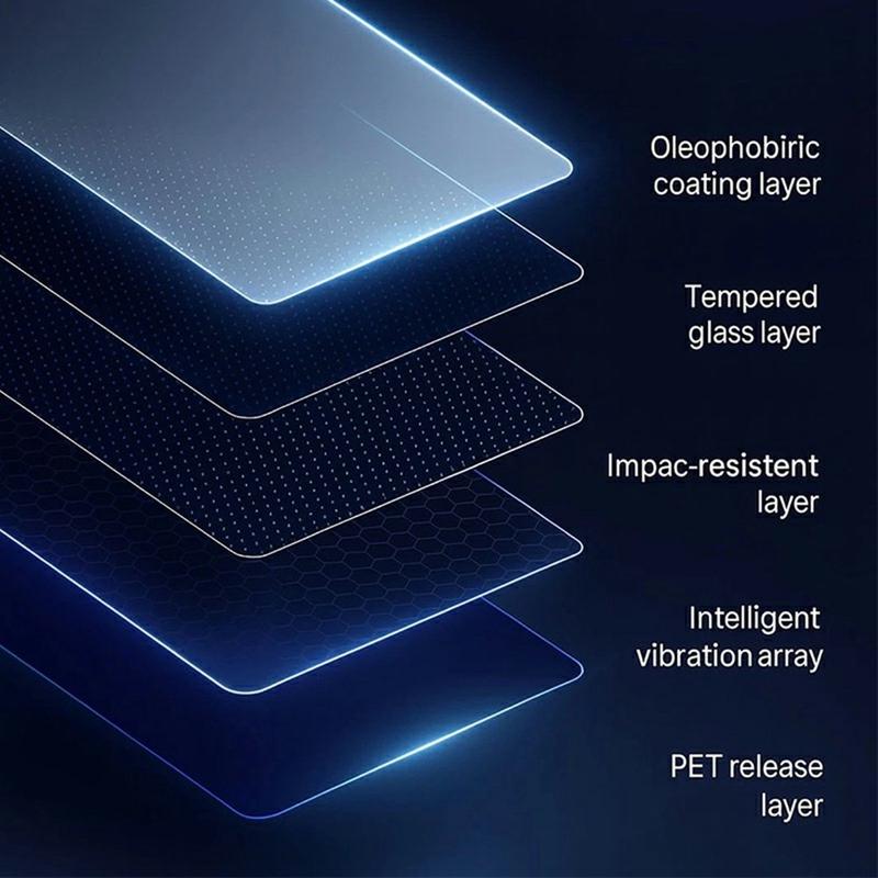 - Ohut karkaistu lasikerros voi vaimentaa pieniä iskuja ja auttaa estämään pysyviä naarmuja alkuperäisessä näytössä.