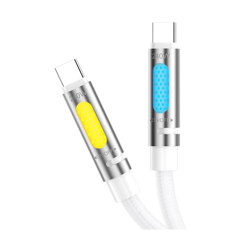 BWOO USB-C - USB-C aromaterapia-latauskaapeli 240W, 1.2m - RGB-valo, nestemäinen silikoni, 480 Mbps