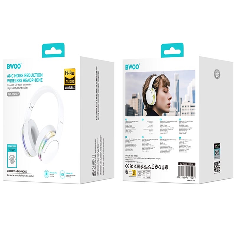 - BWOO-korvanpäälliset langattomat kuulokkeet ANC-tekniikalla ja RGB-valoilla