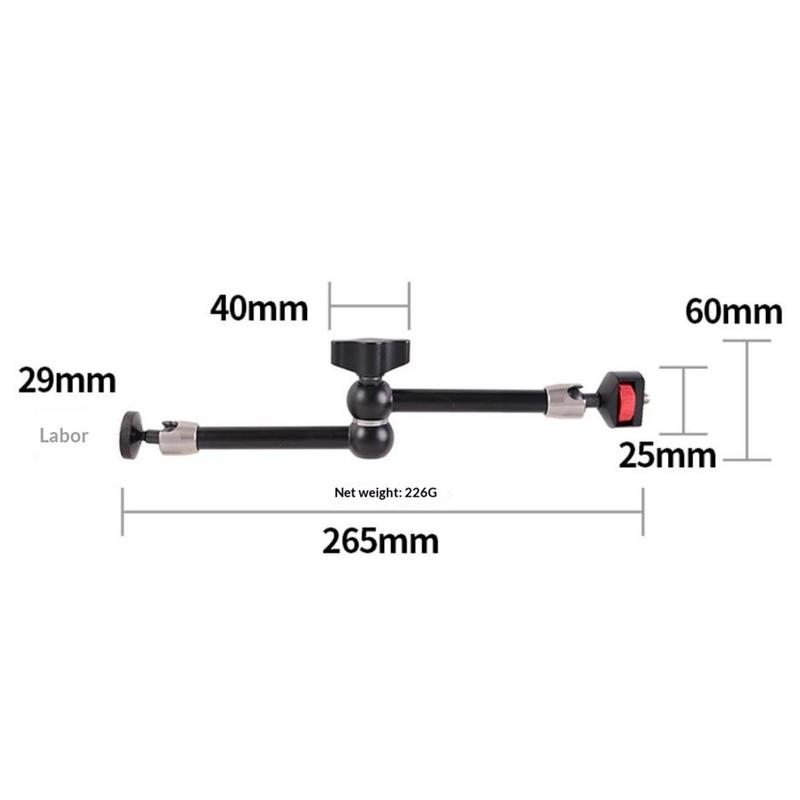 C119 11 tuuman Magic Arm -kiinnike - säädettävä kaksoispallopää, 1/4 tuuman kierteellä, sopii kameroille, puhelimille, mikrofoneille ja kolmijaloille