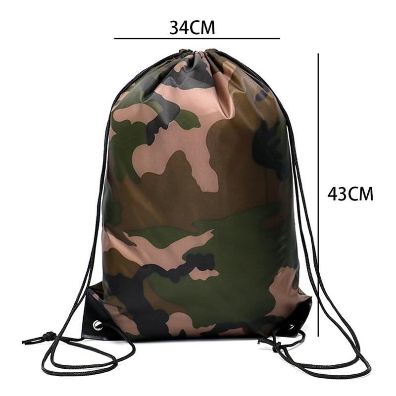 Camouflage Drawstring Backpack tarjoaa täydellisen yhdistelmän tyyliä, vahvuutta ja mukavuutta. Tilavan rakenteensa, vahvistetun rakenteensa ja huomiota herättävän naamiointikuvionsa ansiosta se on ihanteellinen laukku urheiluun, matkustamiseen ja jokapäiväisiin aktiviteetteihin.