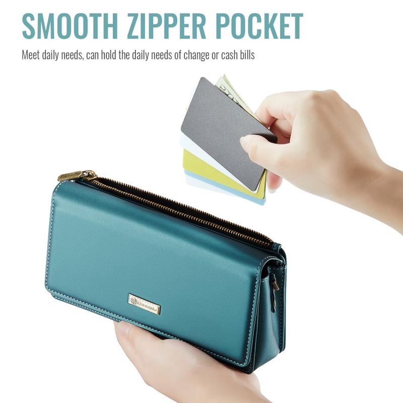 Käytännöllisyyteen suunnitellussa Caseme Me30 -laukussa on 7 korttipaikkaa, 1 setelilokero, 1 vetoketjullinen tasku ja oma valokuvapidike, jotka pitävät kaikki tavarasi järjestyksessä ja helposti saatavilla. Sen yhteensopivuus 4,0-7,5 tuuman älypuhelinten kanssa takaa täydellisen istuvuuden useimpiin puhelimiin, joten se on täydellinen all-in-one-ratkaisu jokapäiväisiin tarpeisiisi.
