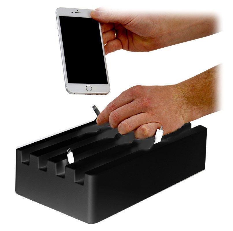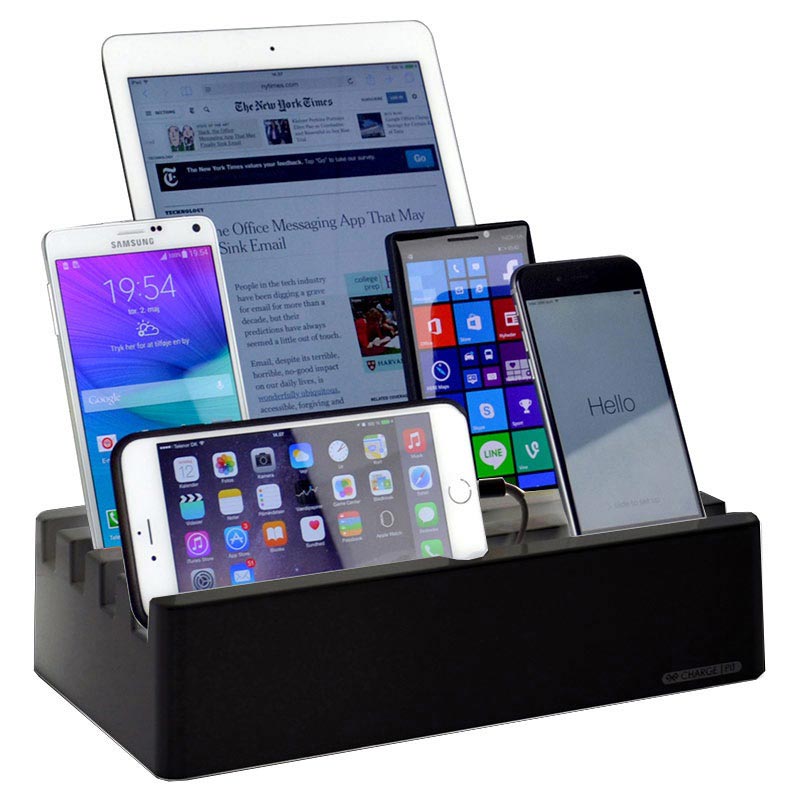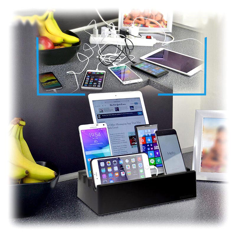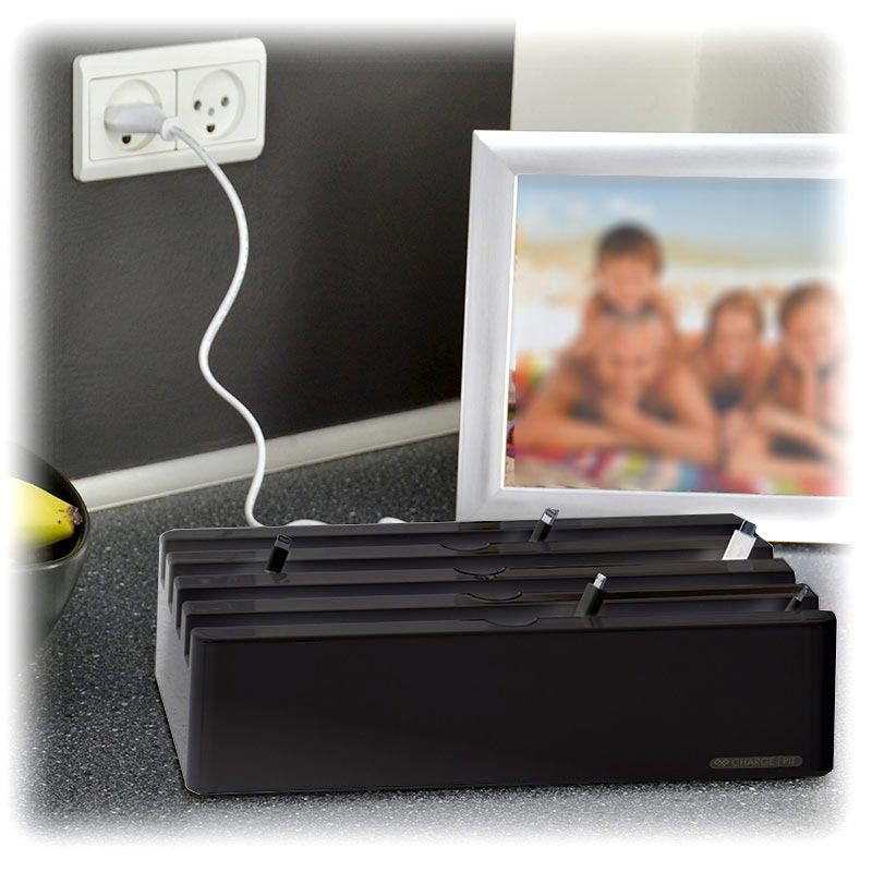 - Toimitukseen sisältyvä tehokas laturi lataa jopa kuusi laitetta samanaikaisesti ja nopeasti