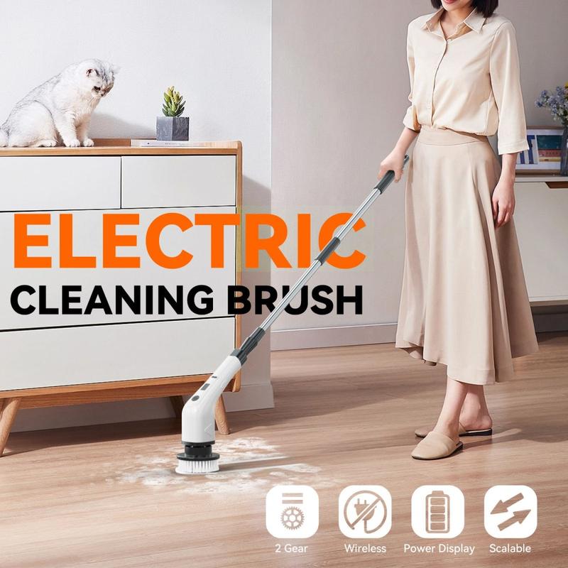 CLE-04 Johdoton sähköinen siivousharja, jossa on jatkokahva - 8-in-1 pyörivä pesuri, USB-C ladattava, IPX7-vesitiivis