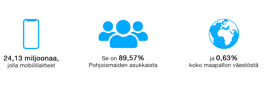 Raportissamme katsomme mobiilikäyttäjien ja Pohjoismaiden älypuhelinmarkkinoiden tilastot.