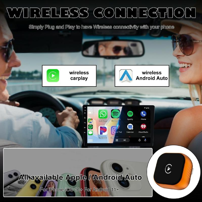 Tee päivittäisestä ajamisesta entistä mukavampaa CP031-1 2-in-1 Wireless CarPlay- ja Android Auto -sovittimen avulla. Tämä kompakti USB-sovitin on suunniteltu muuntamaan yhteensopiva langallinen CarPlay- tai Android Auto -yhteys langattomaksi, jotta voit yhdistää puhelimesi ilman, että joudut kytkemään kaapelia joka kerta. Sen pienen koon ansiosta se on helppo jättää kytkettynä autoon, ja yksinkertainen plug-and-play-asennus auttaa pitämään kojelaudan alueen siistimpänä ja järjestyksessä.