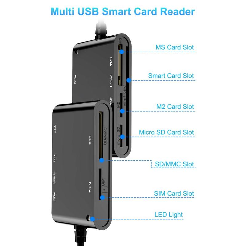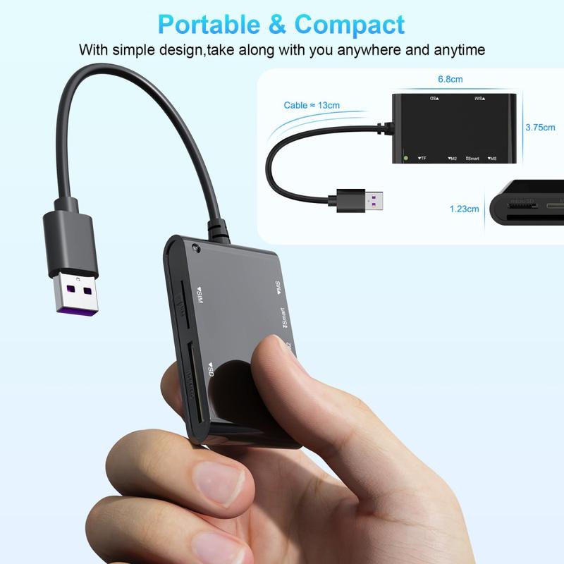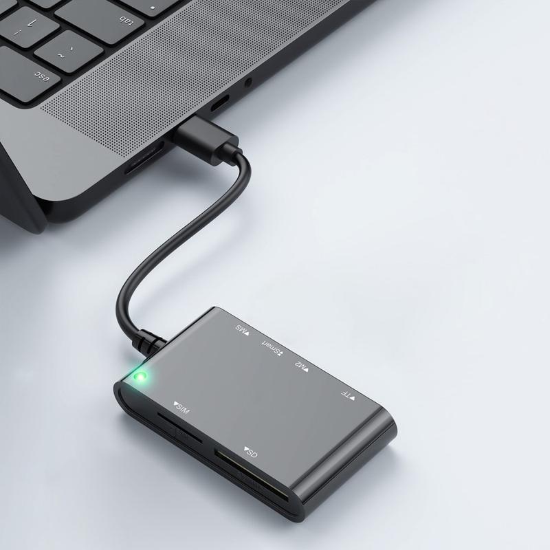 - 6-in-1-kortinlukija - Tukee Smart-, MS-, M2-, TF-, SIM- ja SD-kortteja laajaan käytettävyyteen.