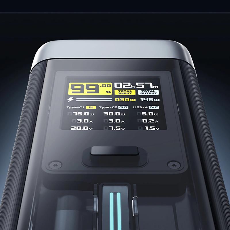 1,54 tuuman värillinen TFT-näyttö antaa reaaliaikaisen näkyvyyden tärkeisiin latausparametreihin, kuten jännitteeseen, virtaan ja akun tasoon, joten tiedät aina, mitä tapahtuu. Moderni sylinterimäinen muotoilu ja puoliläpinäkyvä kotelo lisäävät teknologiaan inspiroitunutta ulkonäköä ja parantavat otetta ja käsiteltävyyttä matkoilla tai päivittäisessä käytössä. Laajojen turvallisuus- ja kuljetussertifikaattien ansiosta se on suunniteltu luotettavaksi virtalähteeksi etätyöhön, pitkille matkoille ja hätätilanteiden varalle.