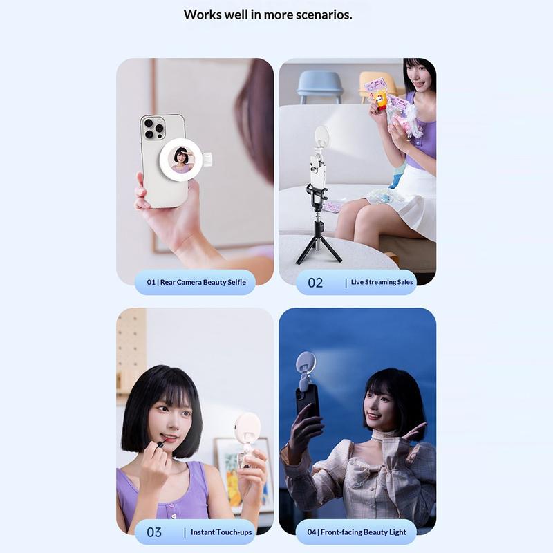 CYKE D6 -taskun täyttövalo on kompakti, kiinnitettävä valaistusratkaisu, joka on suunniteltu parantamaan selfieitä, videoita ja jokapäiväistä valokuvausta. Joustavan kulmasäädön ja useiden värilämpötilojen ansiosta se tarjoaa pehmeää, luonnollista valaistusta sekä etu- että takakameroille. Kevyt ja helppo kantaa mukana, tämä taskukokoinen valaisin on ihanteellinen tekijöille, vloggaajille ja kaikille, jotka haluavat parempaa valaistusta liikkeellä ollessaan.