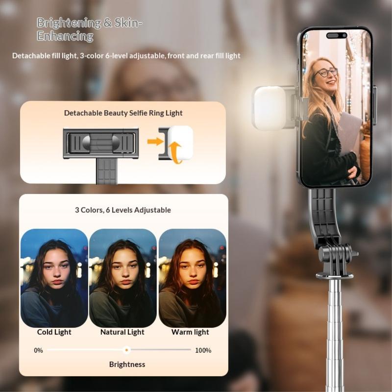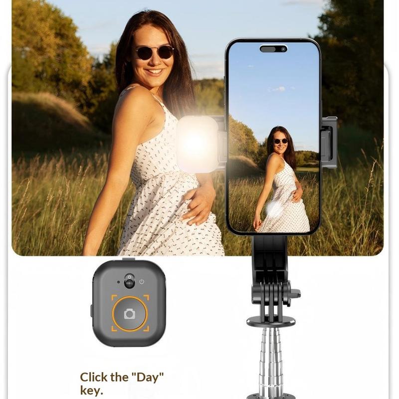 Puhelimen pidike tukee 360°:n kiertoa, mikä mahdollistaa vaaka-, pysty- ja yläpuolelta kuvaamisen. Näin on helppo vaihtaa sosiaalisen median formaattien, ryhmäkuvien ja luovien videokulmien välillä.