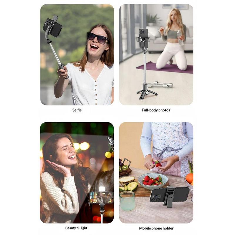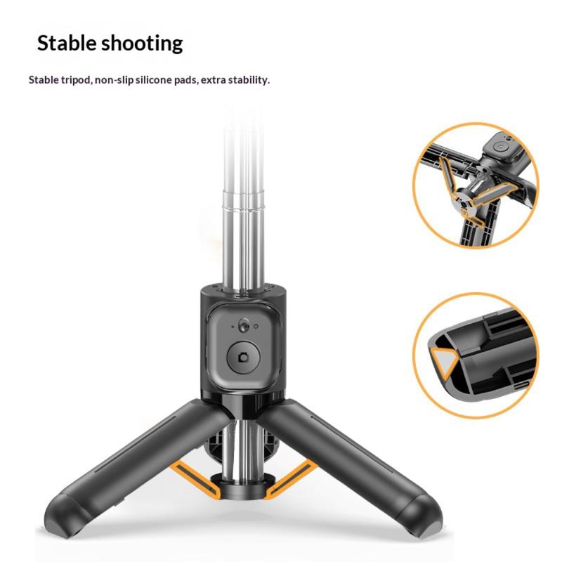 Integroidussa kolmijalassa on sateenvarjomallinen rakenne, jossa on liukastumista estävät silikonityynyt, jotka tarjoavat luotettavan vakauden erilaisilla pinnoilla. Tämä takaa vakaat otokset videoille, valokuville ja suorille lähetyksille ilman ei-toivottuja liikkeitä.