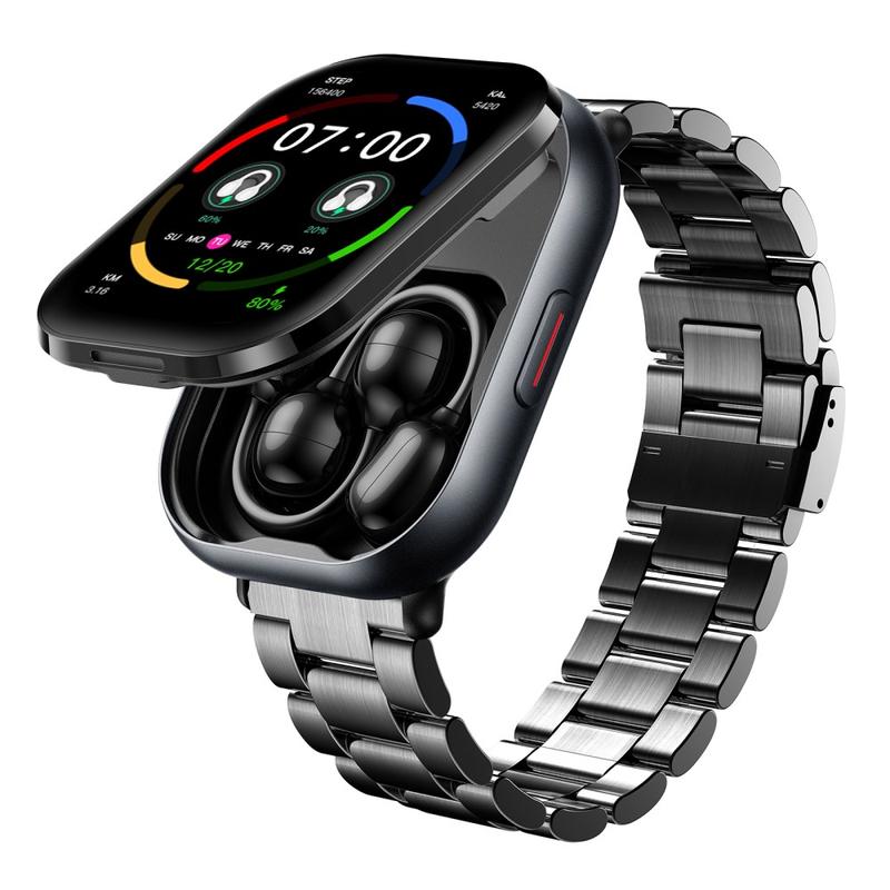 - 2-in-1 Smart Design - Yhdistää älykellon ja irrotettavat Bluetooth-kuulokkeet, jolloin hallitset kuntoa, puheluita ja musiikkia täysin yhdellä laitteella.