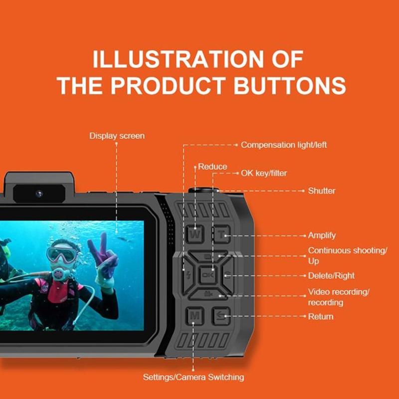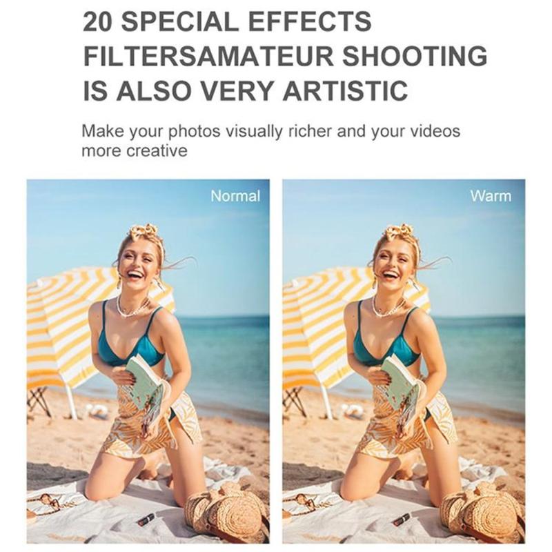 Tallenna ulkoilun hetket entistä helpommin D50-kaksoisnäyttöisellä action-kameralla, joka on kompakti ja vedenkestävä kamera, suunniteltu urheiluun, matkailuun, vesiurheiluun ja arjen seikkailujen kuvaamiseen. Etupuolella sijaitsevan 1,44 tuuman näytön ja takapuolella olevan 2,88 tuuman IPS-näytön ansiosta tämä kamera tarjoaa enemmän joustavuutta kuvien sommittelussa, selfien ottamisessa tai kuvamateriaalin tarkistamisessa liikkeellä ollessasi. Sen kompakti koko ja vedenkestävä rakenne tekevät siitä käytännöllisen valinnan käyttäjille, jotka haluavat kannettavan kameran aktiiviseen käyttöön.