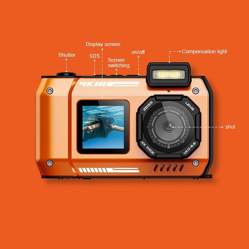 D50 - kaksinäyttöinen vedenpitävä action-kamera - 65 megapikselin IP68-luokiteltu urheilukamera, jossa on 2,88 tuuman ja 1,44 tuuman näytöt