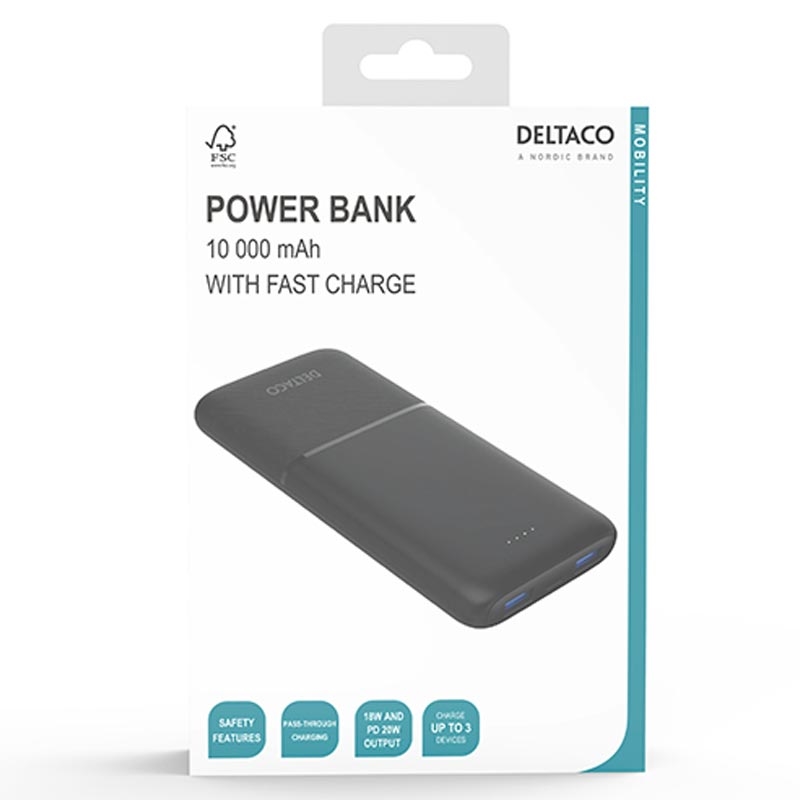 Pysy virralla koko päivän Deltaco 10000mAh -varavirtalähteen avulla. Tämä kompakti kannettava laturi on suunniteltu päivittäiseen käyttöön, matkustamiseen ja varalataukseen, ja sen kolmella lähtöportilla voit ladata jopa kolme laitetta samanaikaisesti.