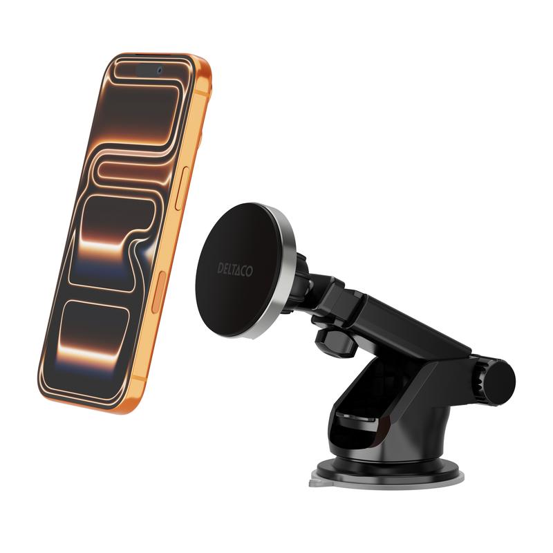 Deltaco kaksoiskiinnitys -magneettinen langaton autolaturi/pidike - Qi2, 15W - musta