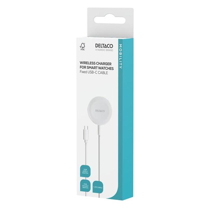Deltaco:n langaton magneettilaturi Apple Watchille/Galaxy Watchille - mukana 1 m:n USB-C-kaapeli