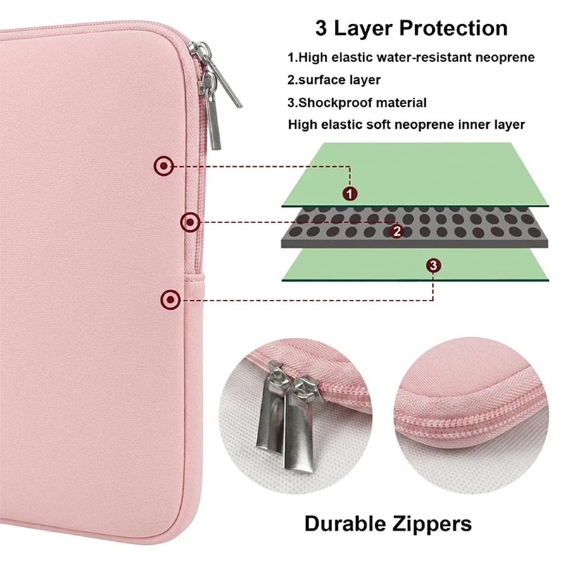 Sisäkerroksessa on 5-6 mm:n paksuinen pehmuste, joka suojaa kannettavaa tietokonetta naarmuilta ja pieniltä iskuilta. Tämä ylimääräinen pehmuste tarjoaa lisäsuojaa, jos laite putoaa tai kolhiintuu vahingossa kuljetuksen aikana. Tällainen pehmustettu suojakotelo on käytännöllinen valinta käyttäjille, jotka haluavat kevyen suojan ilman tilaa vievää kannettavan tietokoneen laukkua.