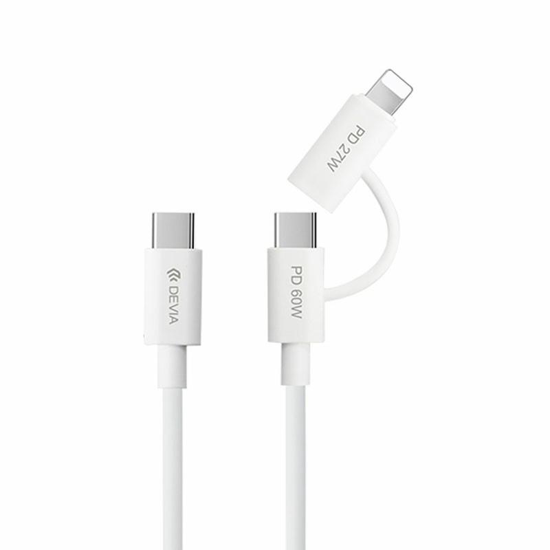 Devia EC404 Smart 2-in-1-pikalataus- ja datakaapeli - USB-C-USB-C PD 60 W ja Lightning 27 W - 1.2m, 480 Mbps