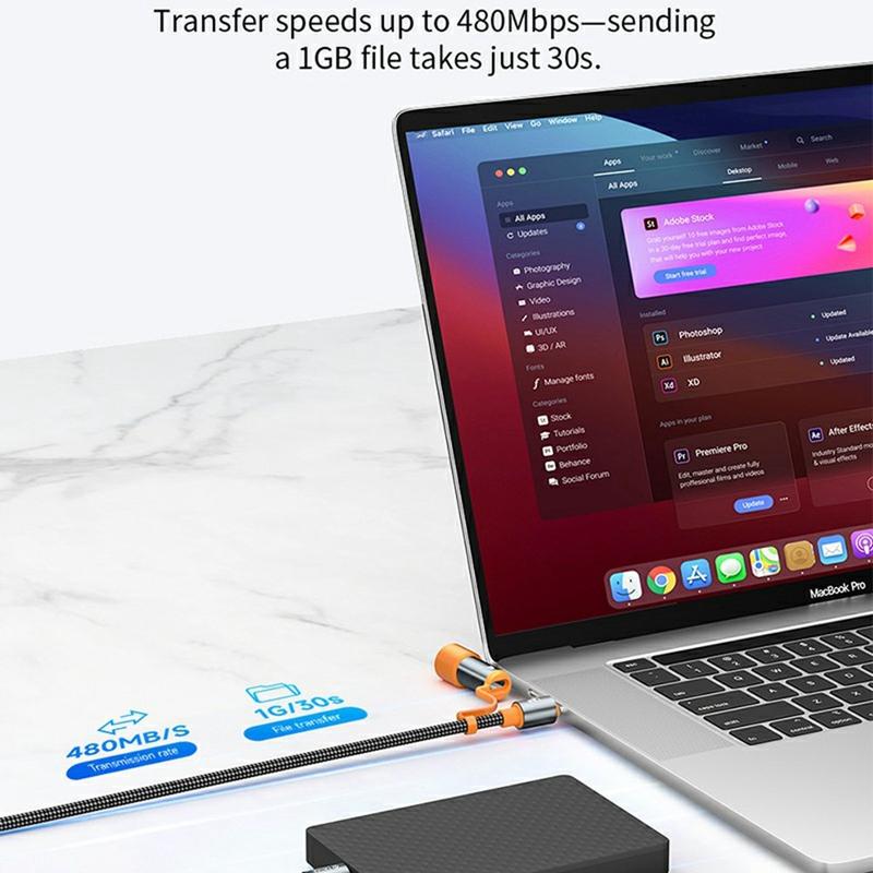 - 240 W:n lataustuki perustuu uudemmat USB-C Power Delivery -standardeihin, jotka on suunniteltu suuremman tehon laitteille, mukaan lukien jotkut kannettavat tietokoneet