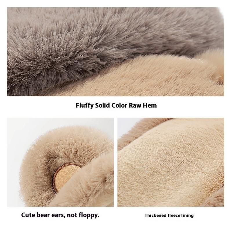 DEZ45 Söpö pehmokarhun korvat talven päähine - Lämmin tuulenpitävä hiuspanta naisille