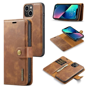 iPhone 15 DG.Ming 2-1:ssä Irrotettava Nahkalompakkokotelo - Ruskea