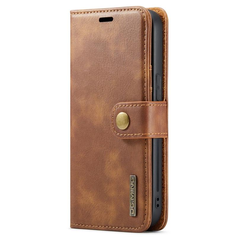 iPhone 12/12 Pro DG.Ming 2-1:ssä Irrotettava Nahkalompakkokotelo - Ruskea