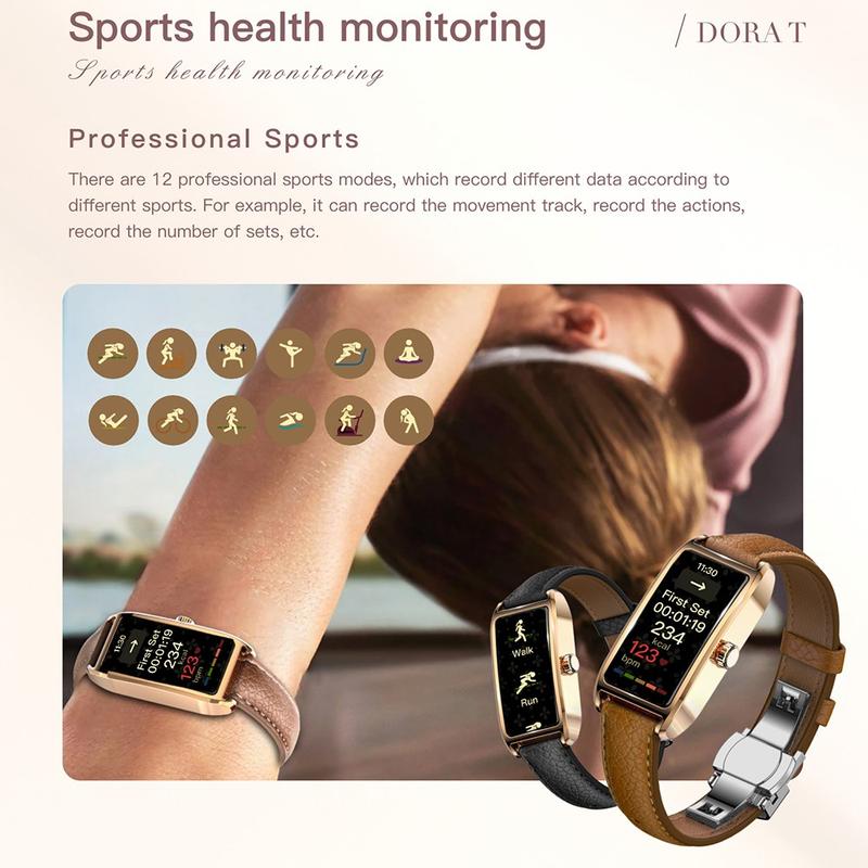 Dora T -älykellossa yhdistyvät tyylikkyys, mukavuus ja älykkyys, mikä tekee siitä enemmän kuin kuntoilunseurantalaitteen - se on elämäntapakumppani. Seuraa sitten treeniäsi tai sovita asuusi, se tuo modernia teknologiaa ranteeseesi mahdollisimman tyylikkäällä tavalla.