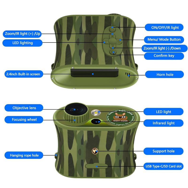 DT15 2.5K digitaalinen yökamera kiikari lapsille - 48MP valokuvat, 8x digitaalinen + 4x optinen zoom, 2.4" IPS-näyttö, 850 nm IR (7 tasoa), USB-C, 2200mAh akku