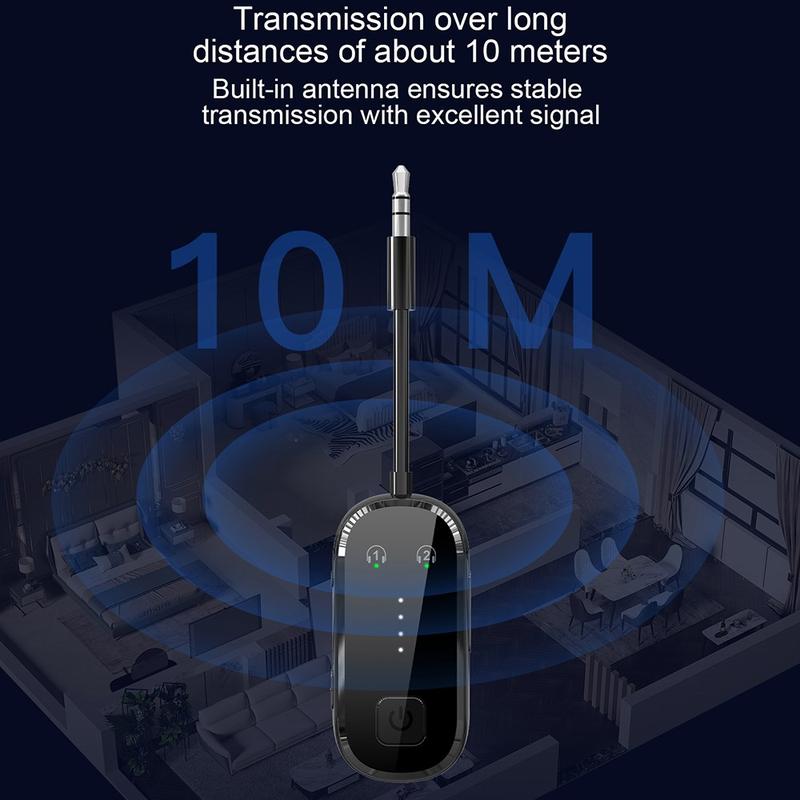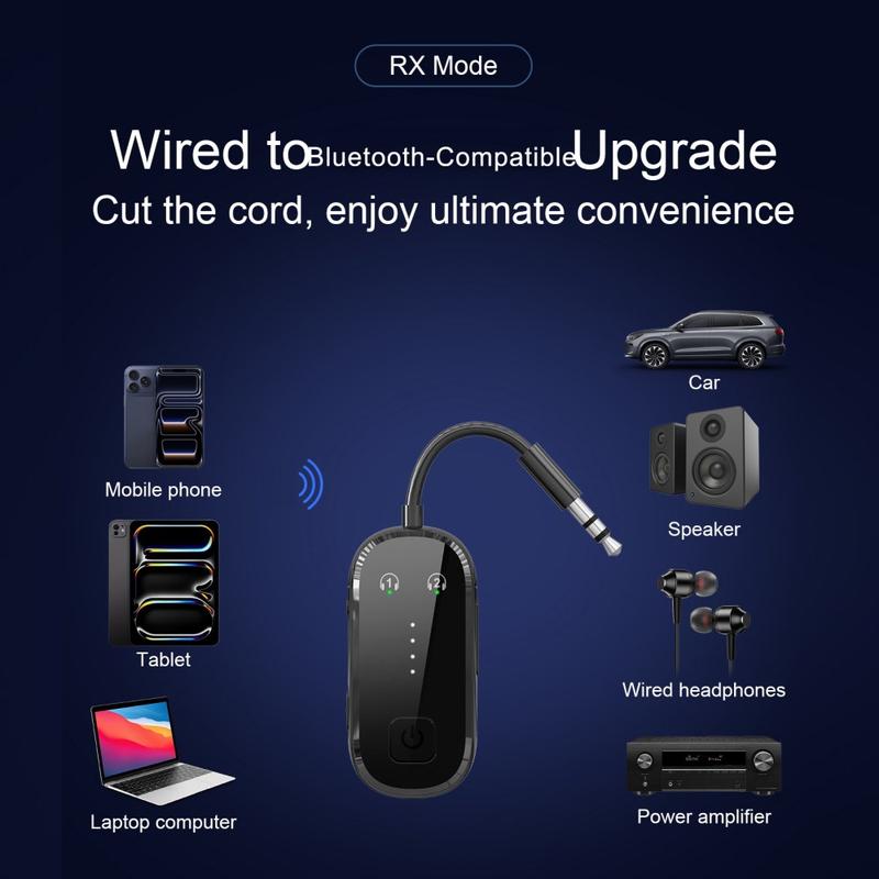 Bluetooth 5.4 -tekniikan ansiosta laite tarjoaa nopeamman vasteen, vakaan yhteyden ja tehokkaan langattoman suorituskyvyn. Lähetintilassa se voi lähettää ääntä langallisista lähteistä Bluetooth-kuulokkeisiin tai -kaiuttimiin. Vastaanottotilassa se voi vastaanottaa langatonta ääntä älypuhelimesta, tabletista tai muusta Bluetooth-yhteensopivasta laitteesta ja välittää sen langallisiin äänilaitteisiin 3,5 mm:n liitännän kautta. Dual Link -tuki lisää mukavuutta entisestään mahdollistamalla yhteyden kahteen Bluetooth-laitteeseen samanaikaisesti, mikä helpottaa yhteistä kuuntelua tai laitteiden välillä vaihtamista.